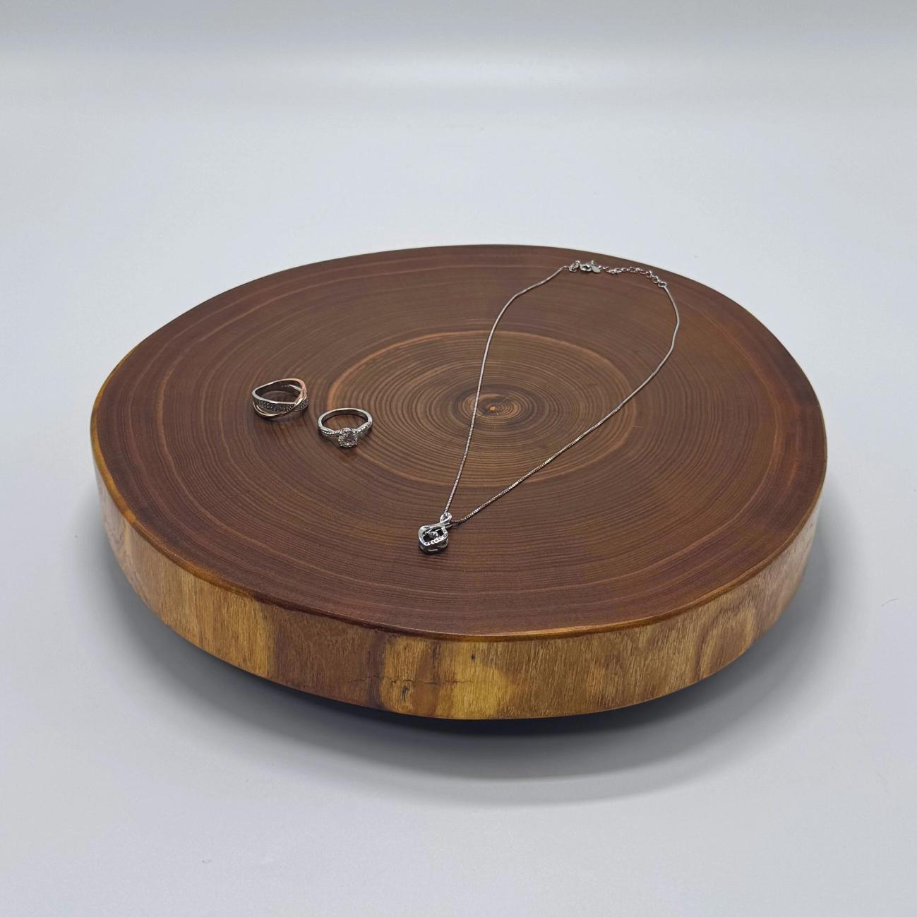 お気に入りのアクセサリーや腕時計などを美しくディスプレイできます。エンジュボードの優美な木肌が、貴重品の輝きをさらに引き立てます。