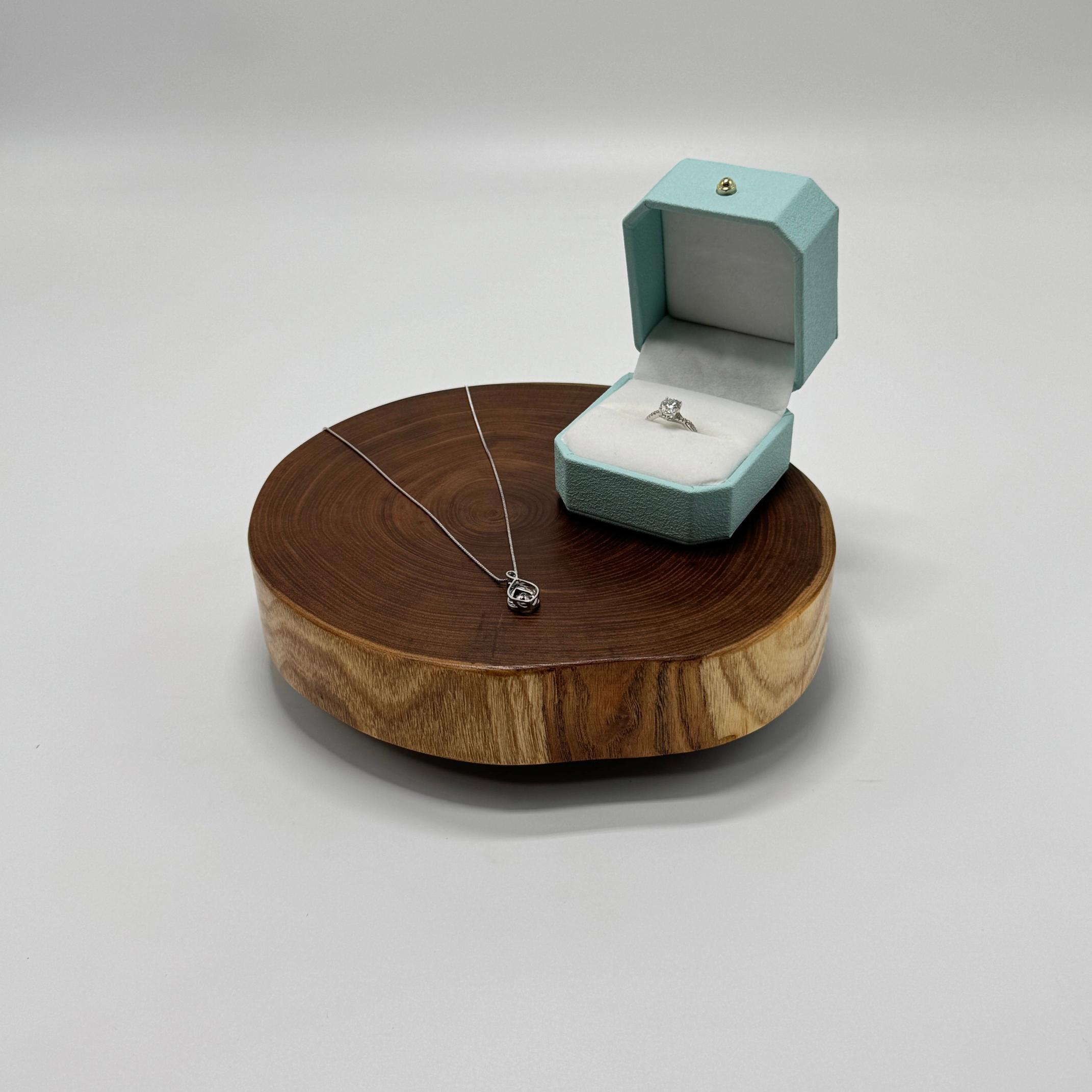 お気に入りのアクセサリーや腕時計などを美しくディスプレイできます。エンジュボードの優美な木肌が、貴重品の輝きをさらに引き立てます。